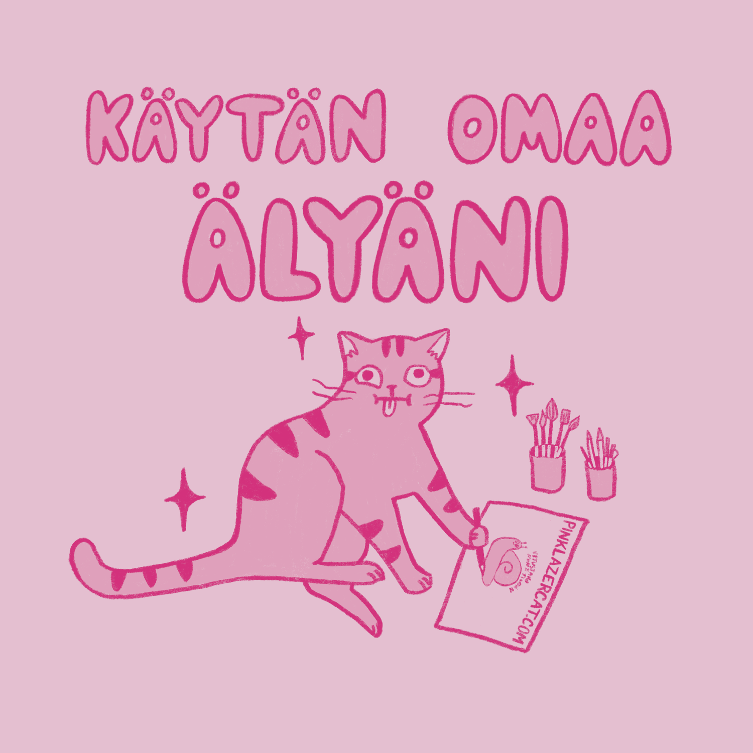 Aivan kaikki tuotteiden kuvitukset piirrän alusta asti ihan itse, enkä käytä tekoälyä missään vaiheessa luomisprosessiani. Luonnostelen yleensä ensin vihkoon ja sen jälkeen piirrän sen digitaalisesti valmiiksi. Piirtämiseen käytän iPad Pro tablettia, Apple kynää sekä Procreate sovellusta.