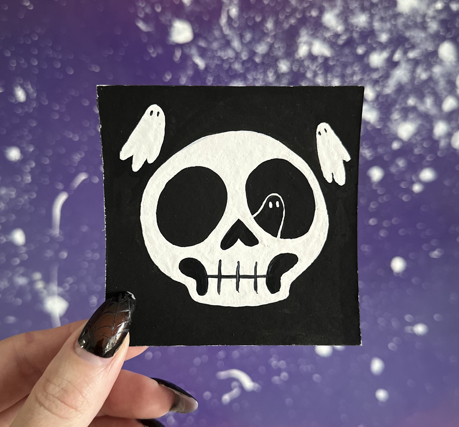 Alkuperäisteos tehty guassimaaleilla 280gsm paperille. Koko n. 8.8 cm x 8.8 cm.