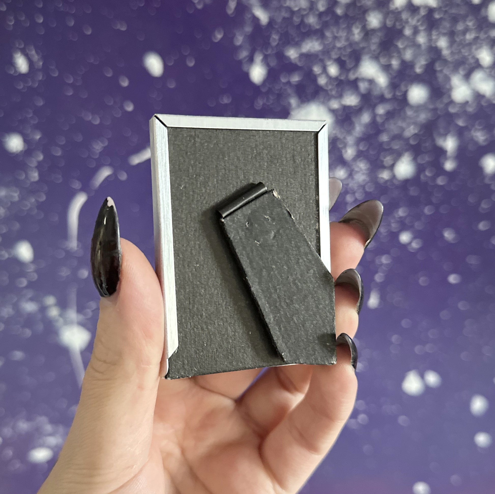 Tehty maalitusseilla paperille. Signeeraus takana. Kehyksen voi sijoittaa vain pöydälle, ei sisällä ripustuskoukkua. Koko kehyksineen n. 6.5 cm x 5 cm