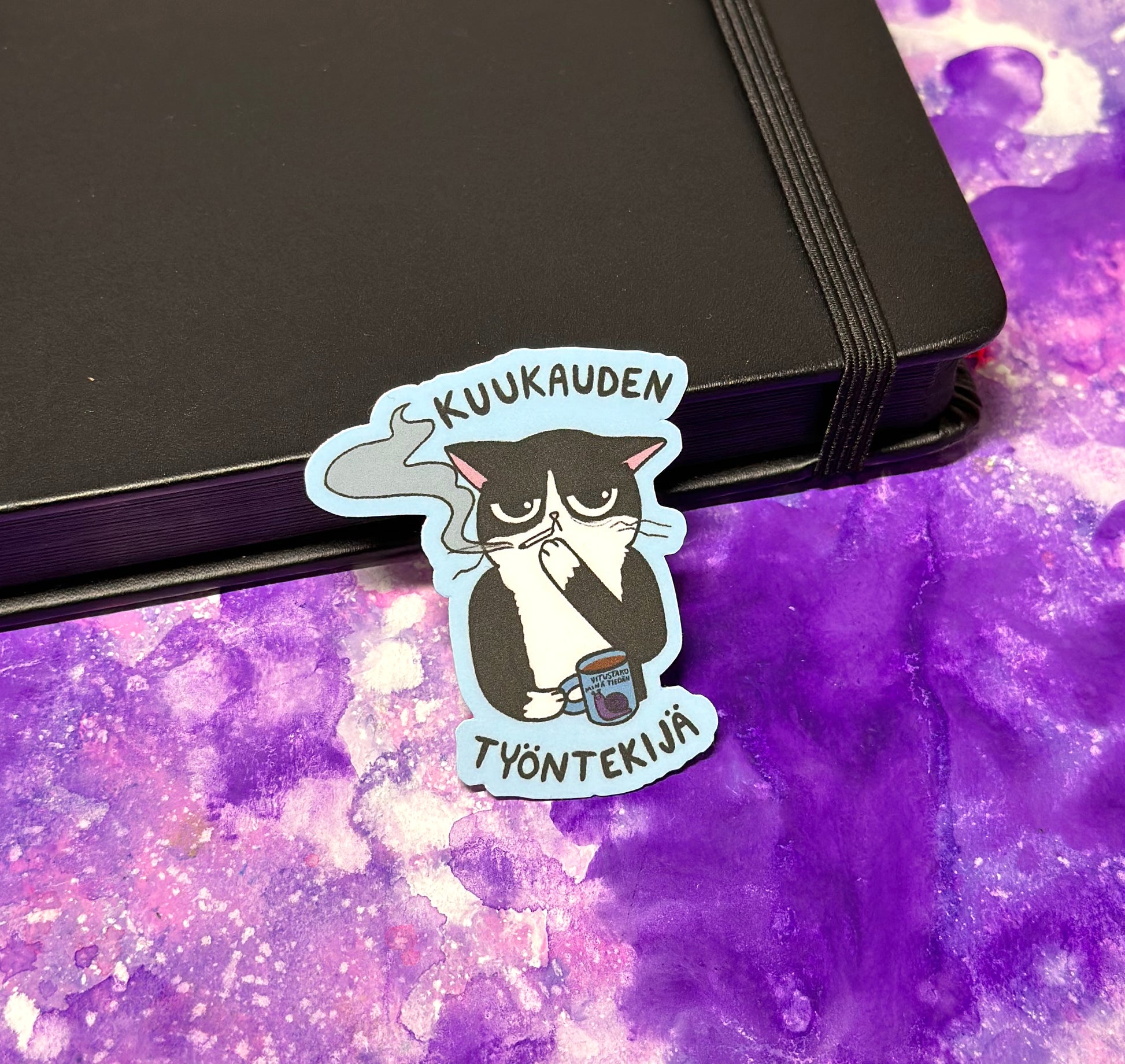 Mattapintainen tarra. Koko n. 5.3 cm x 4.6 cm