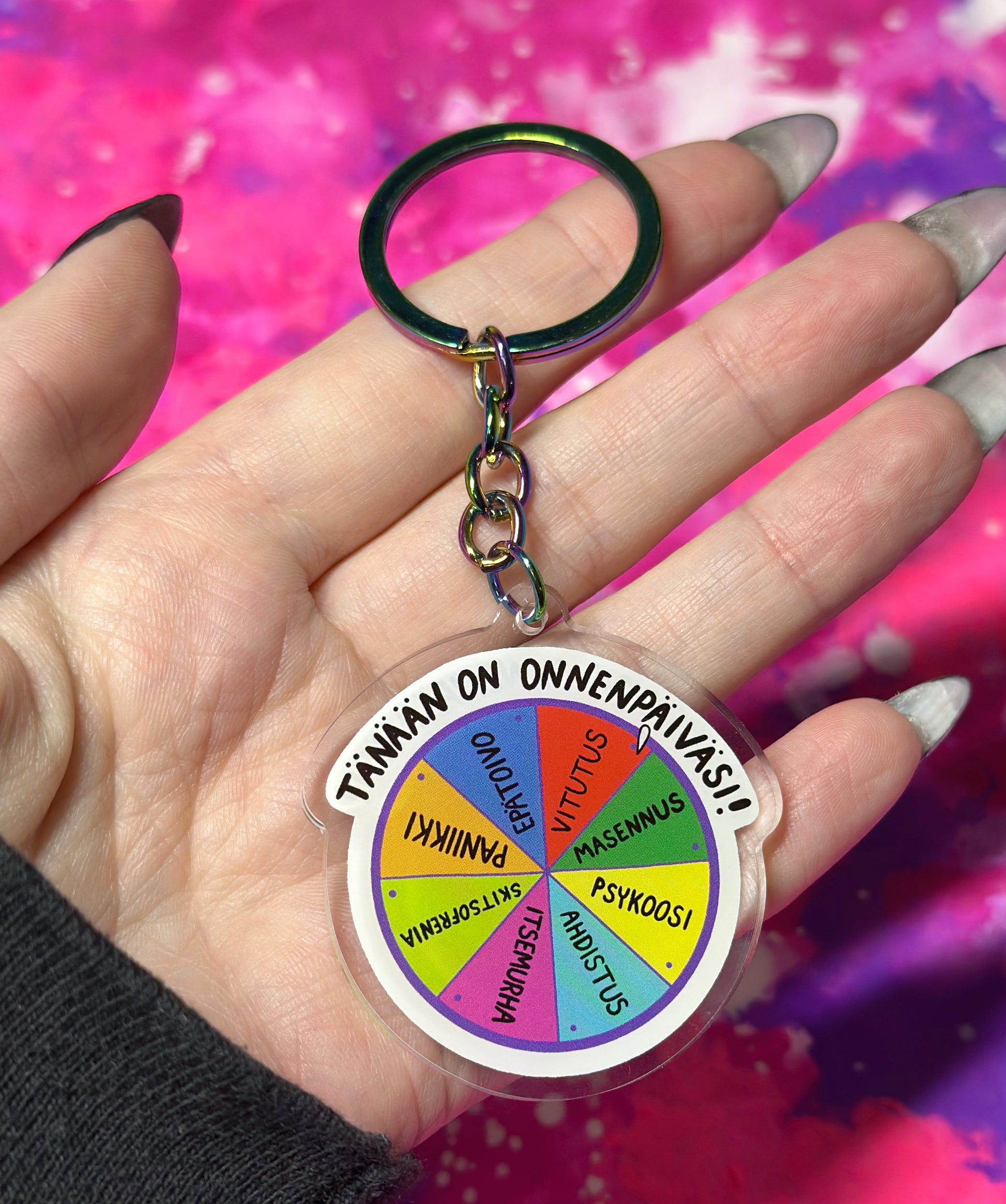 Huom. avaimenperä voi mennä rikki vetämisestä, riuhtomisesta tai jos se jää kiinni johonkin. Tämä tuote ei ole lelu. Ei sovellu alle 3-vuotiaille. Sisältää pieniä osia. Vain ulkoiseen käyttöön.