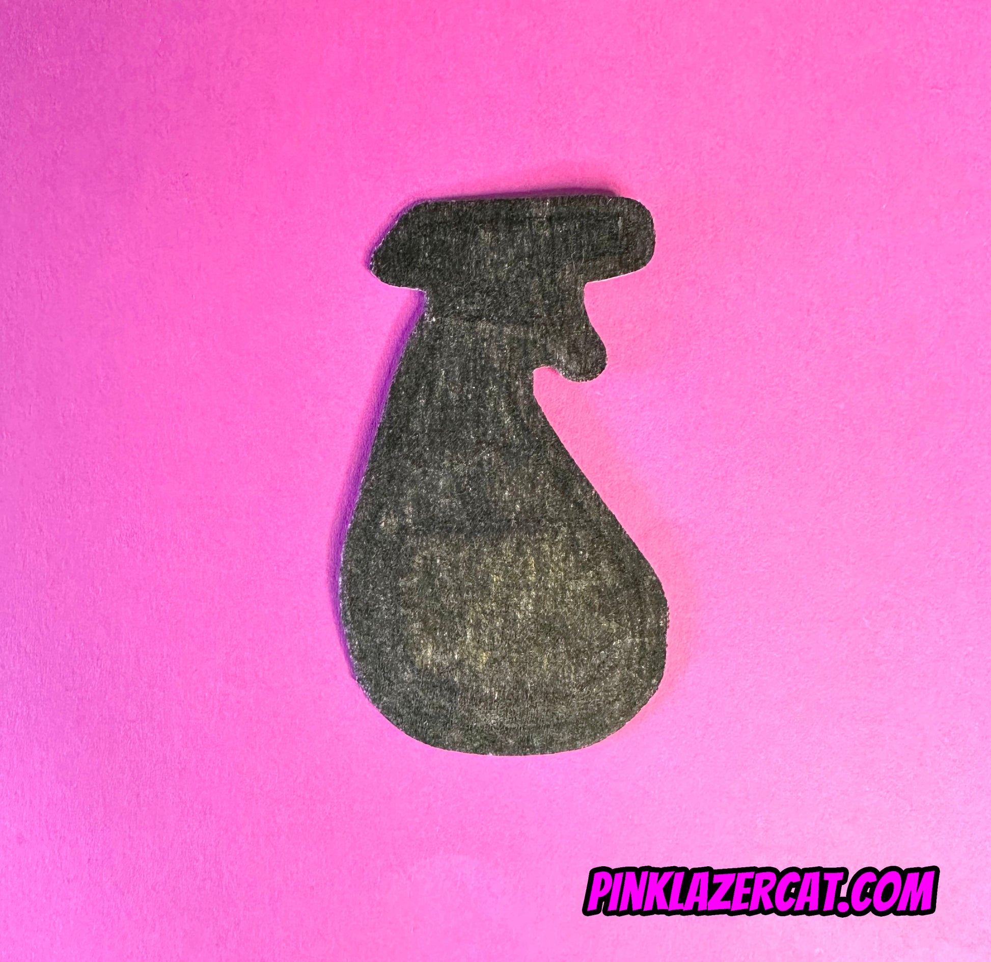 Brodeerattu spray pullo kangasmerkki tekstillä "Painu vittuun spray"