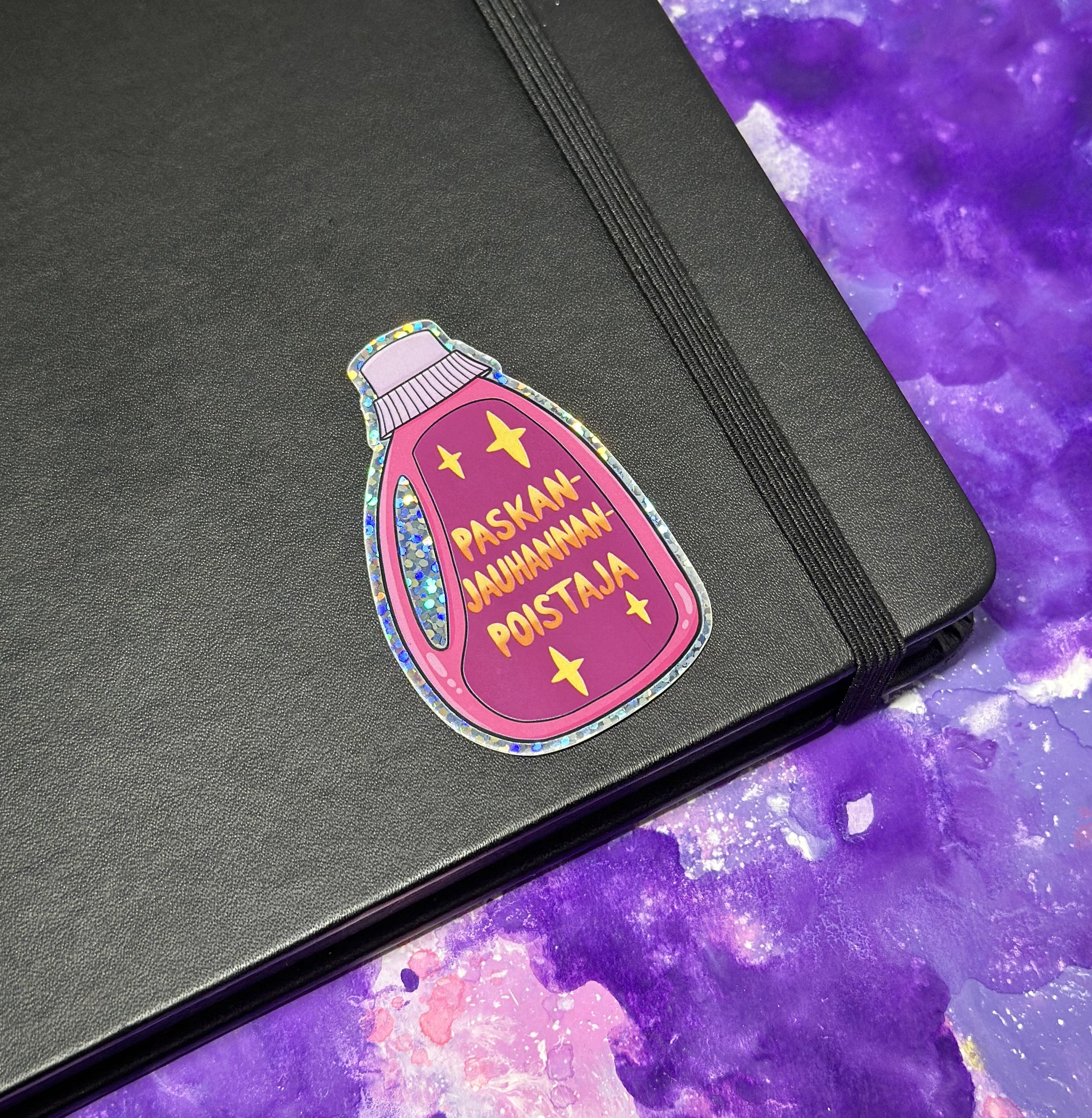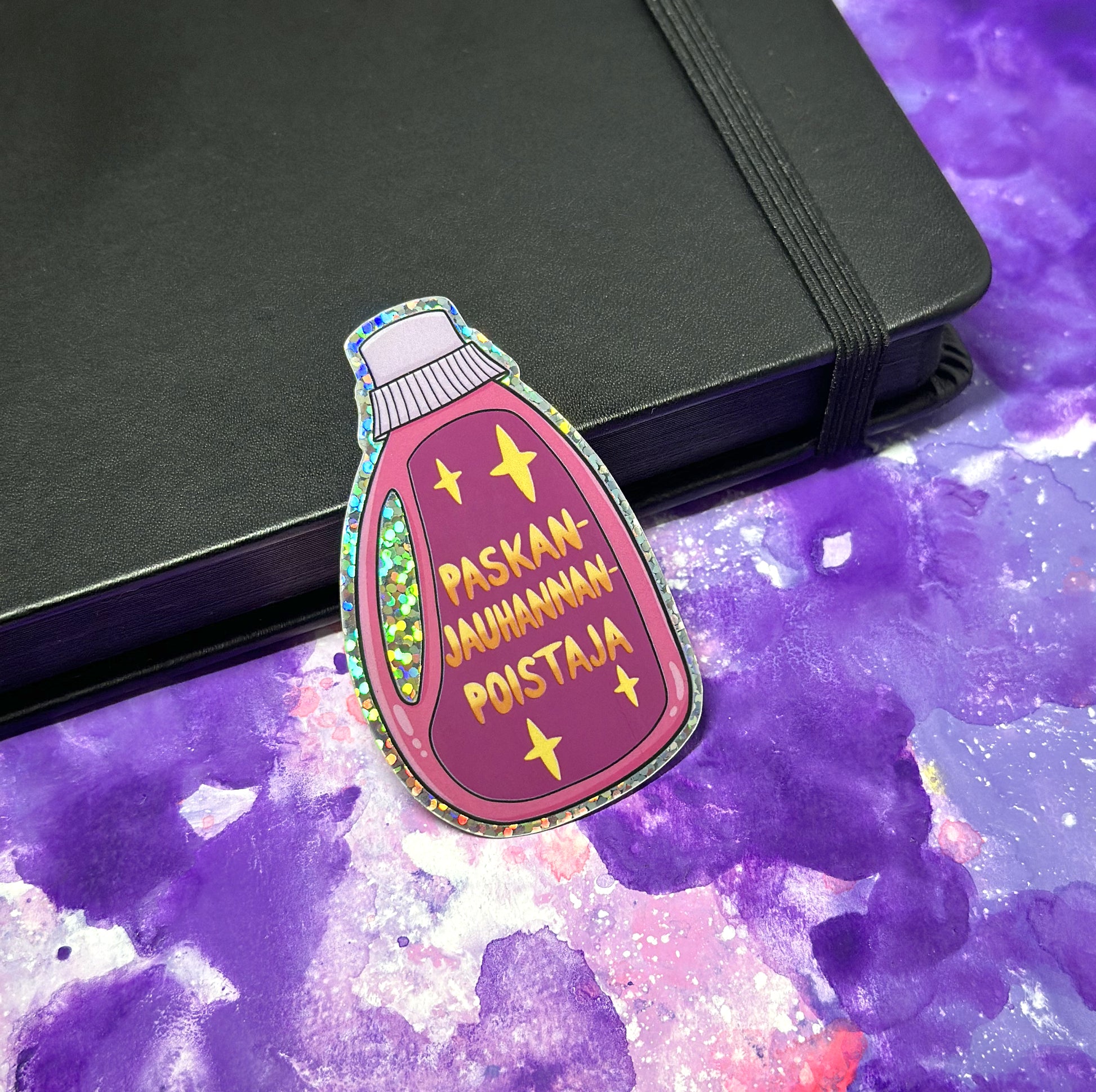 Kimalteleva "Paskanjauhannanpoistaja" tarra.