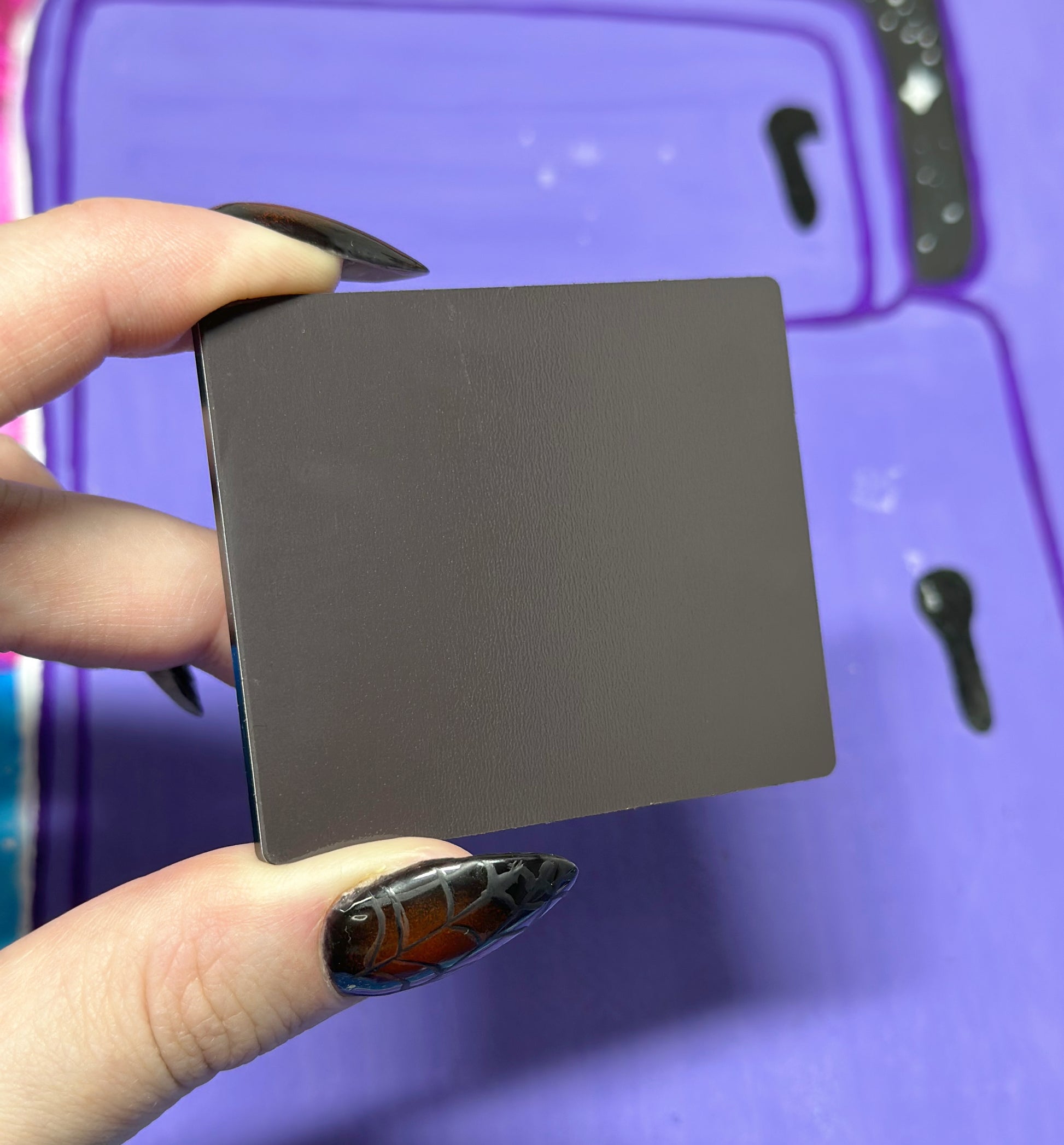 Materiaalina akryyli. Magneetti on kova eikä jousta. Pitää hyvin esim. postikortin kiinni jääkaapin ovessa. Poista suojakalvo magneetista.